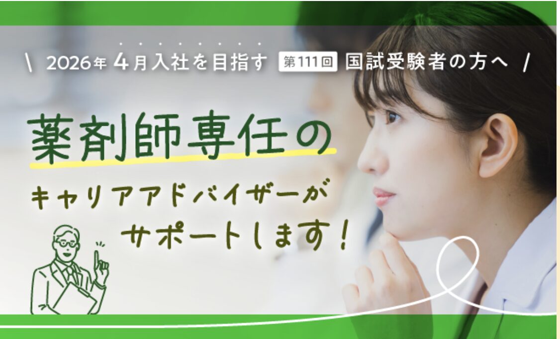 ギリギリになり就職先がなくて困っている方でも簡単2ステップで完全無料で利用することができるマイナビ薬剤師がおすすめです。特に初めての就職活動をする国試合格者の方にも親切、丁寧に教えてくれます。